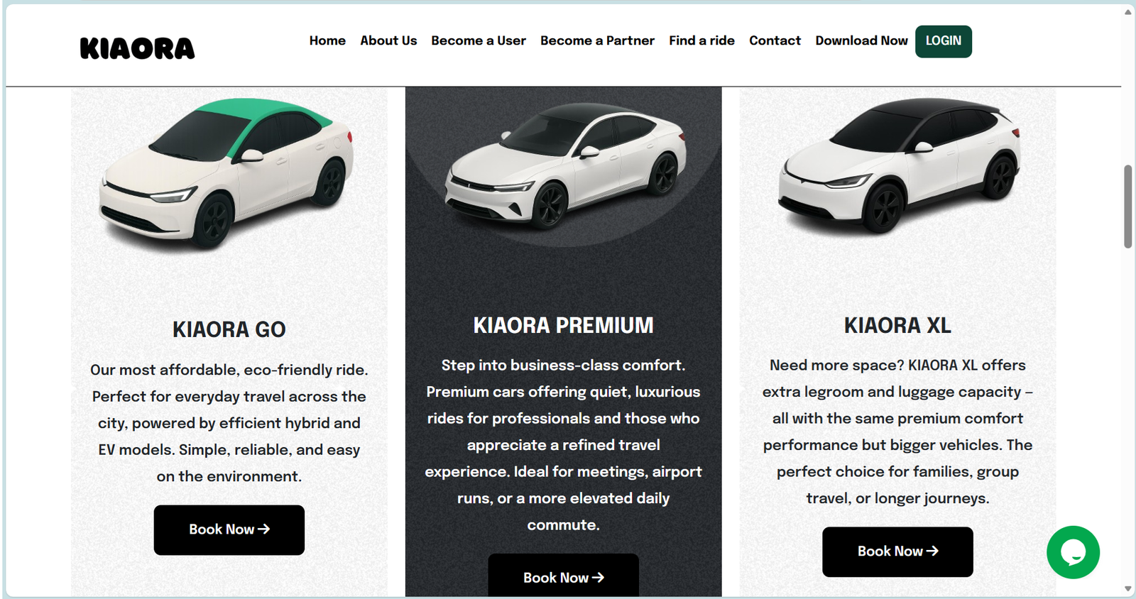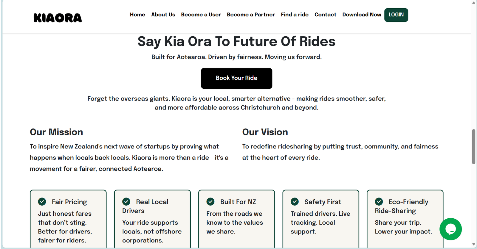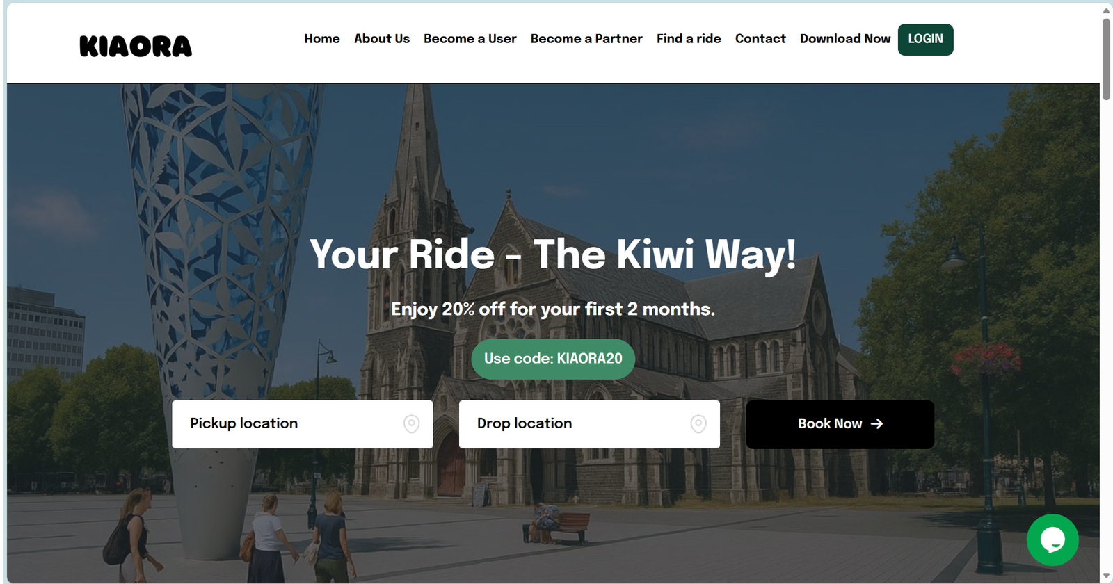 Kiaora is Christchurch's own ride-sharing platform — built for Aotearoa, driven by fairness, and moving New Zealand forward. The platform was designed to challenge overseas ride-sharing giants by offering a local, community-first alternative that is safer, more affordable, and environmentally conscious. Operating across Christchurch with expansion plans nationwide, Kiaora connects passengers with fully vetted local drivers across three service tiers: KIAORA GO, PREMIUM, and XL — all powered by 100% EV and hybrid vehicles.