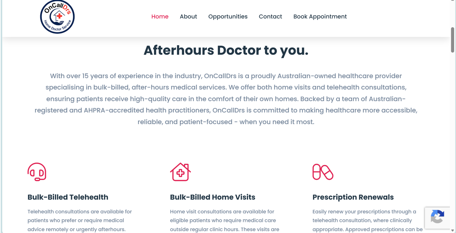 OnCallDrs was developed to address the critical need for reliable, accessible, and bulk-billed after-hours medical care across Australia. The platform connects patients requiring urgent afterhours care with Australian-registered and AHPRA-accredited doctors, creating a seamless healthcare ecosystem that prioritises patient safety, convenience, and affordability — when it matters most.