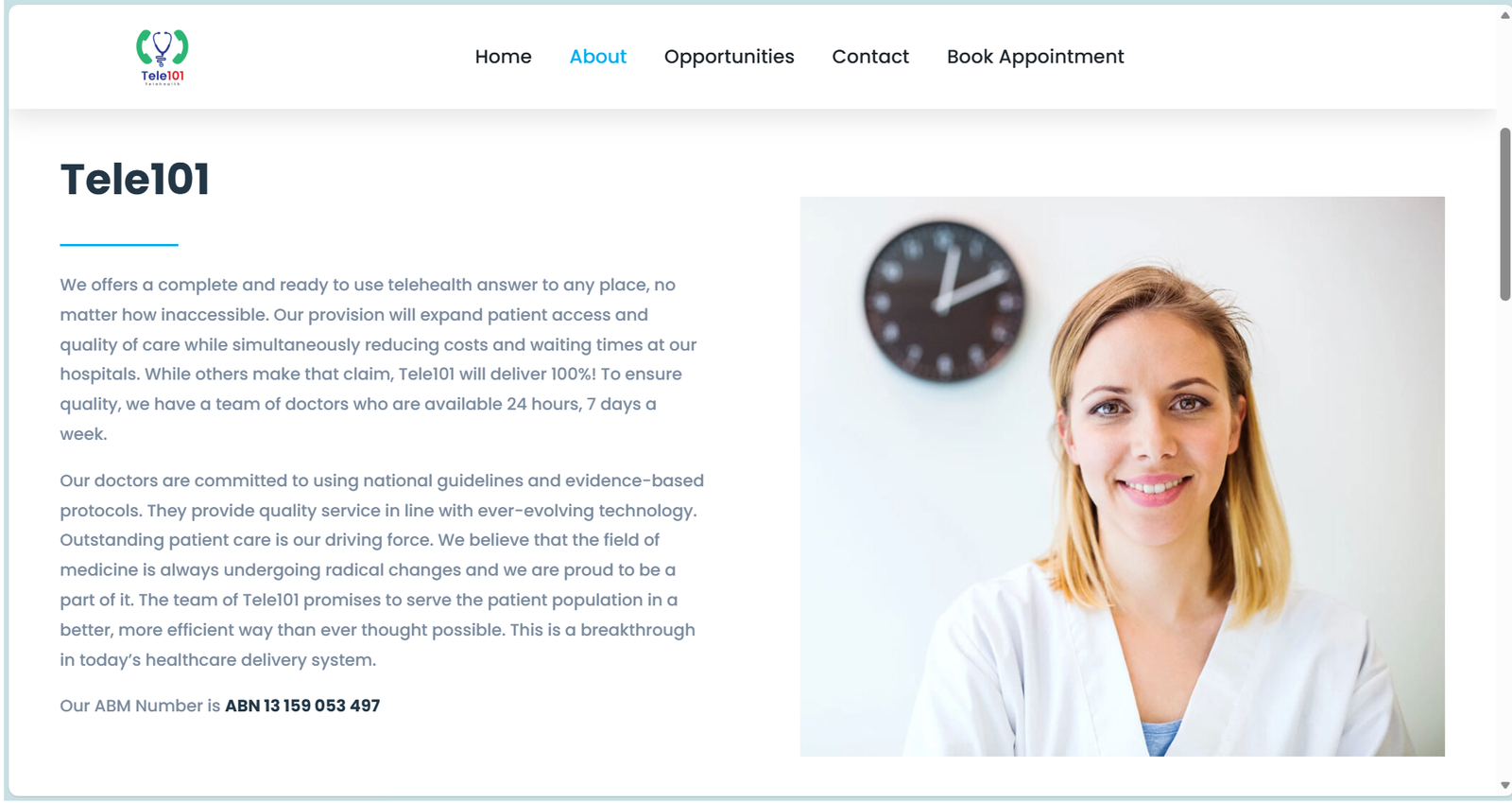 Tele101 was built to address a fundamental gap in healthcare accessibility — delivering a complete, ready-to-use telehealth solution to any place, no matter how inaccessible. The platform connects patients with Australian-registered, AHPRA-accredited doctors for consultations, prescriptions, referrals, and certificates — all online, all without a waiting room. Tele101's mission is to facilitate efficient delivery of evidence-based medicine to achieve superior patient outcomes, serving the population in a better, more efficient way than ever thought possible.