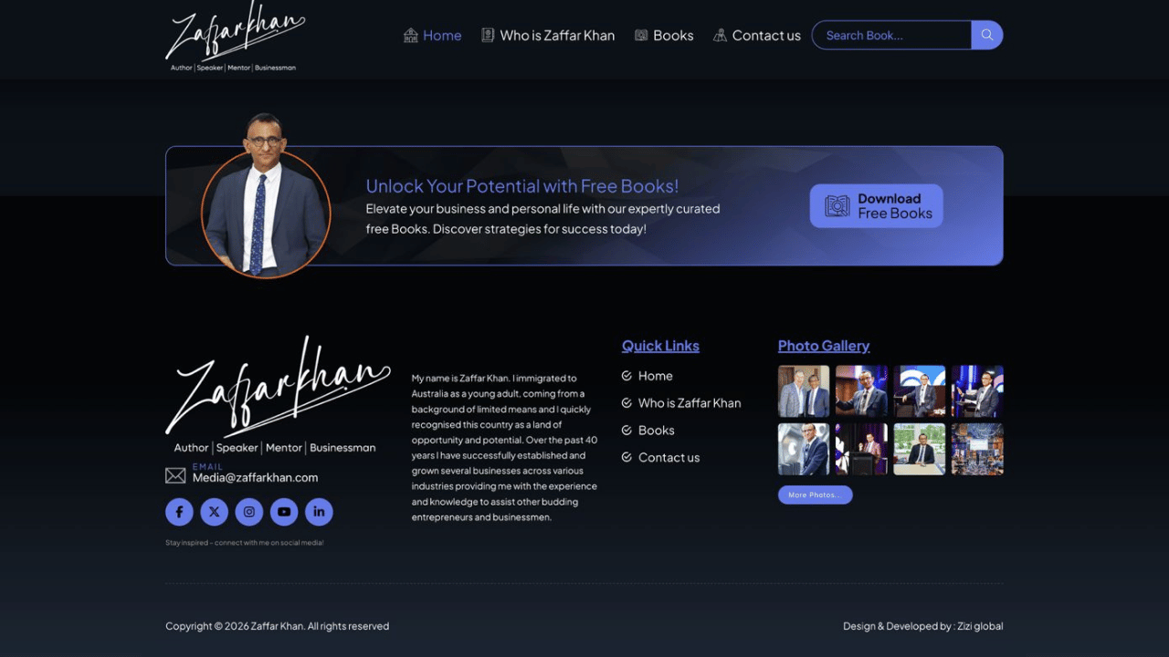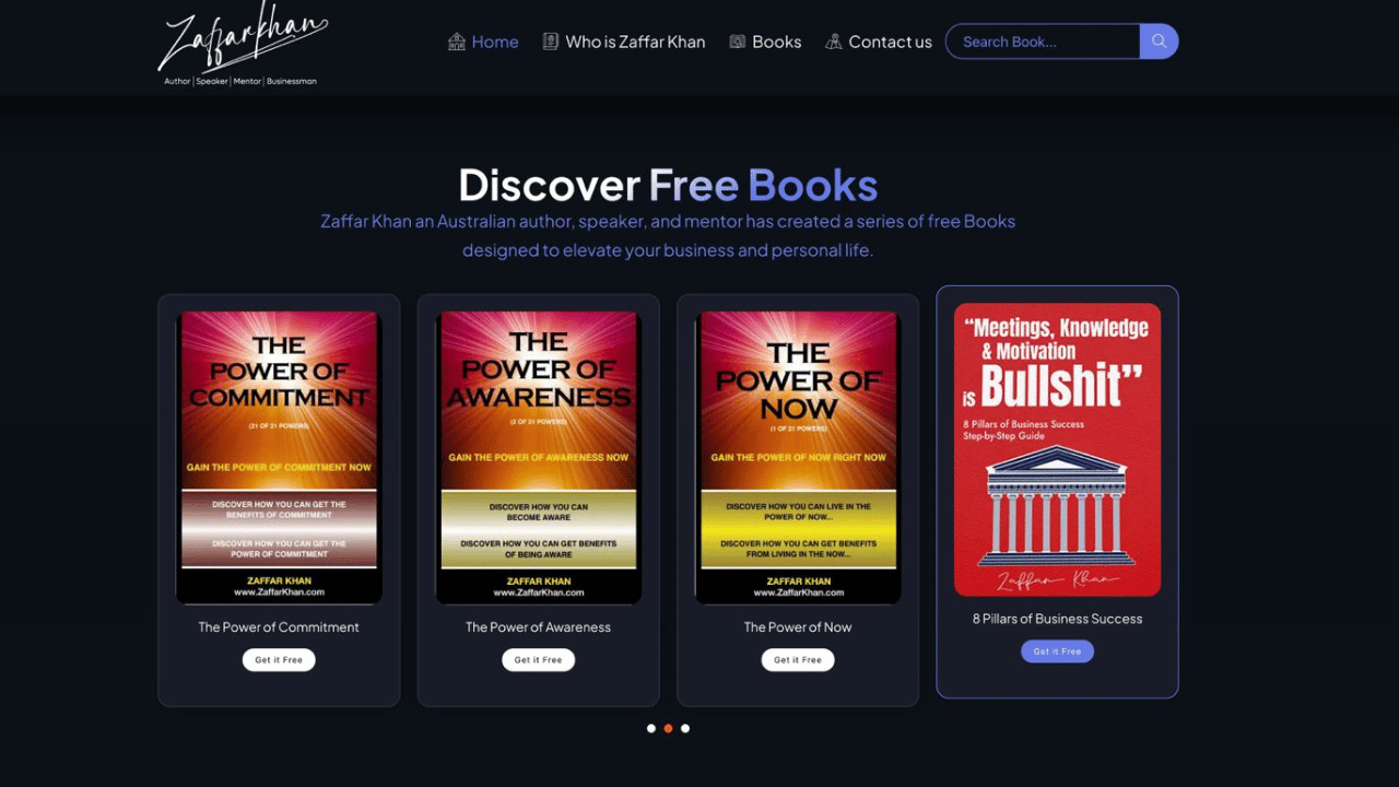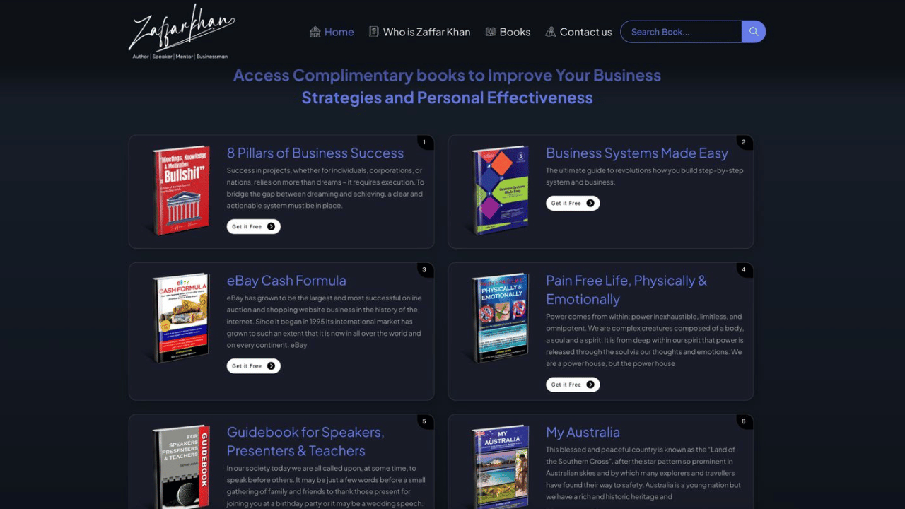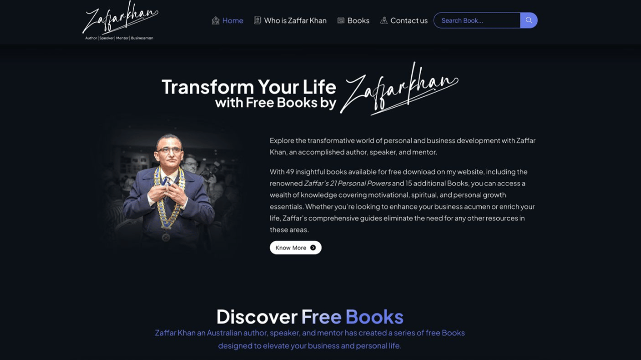 Zaffar Khan's platform was built to share the life, knowledge, and entrepreneurial journey of one of Australia's most inspiring business figures. Immigrating to Australia with limited means, Zaffar grew multiple businesses over 40 years — including selling a taxi training company to Macquarie Bank for $14 million — and now offers 49 books completely free to help budding entrepreneurs achieve success.